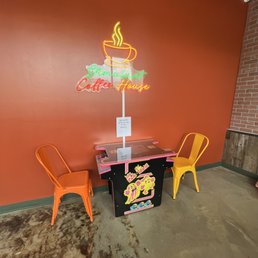 What a cute place! Plenty of tables inside and out. They have a comfy couch and chairs too for a more relaxed visit. They offer teas, coffees and baked goods. There are books to borrow, board games to play - the perfect place to chill! Yep...I'll come back!